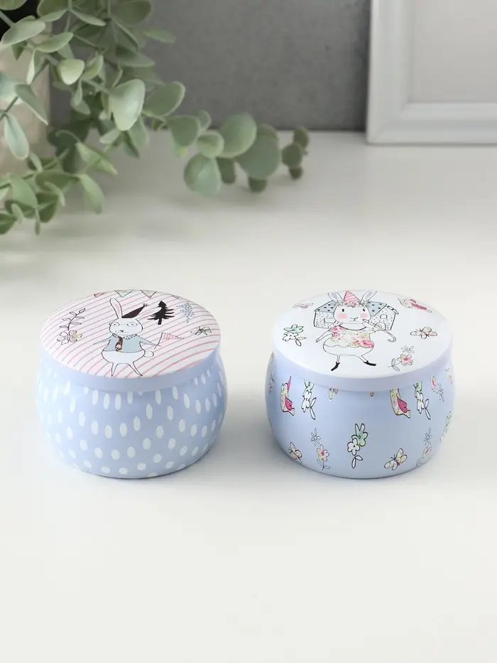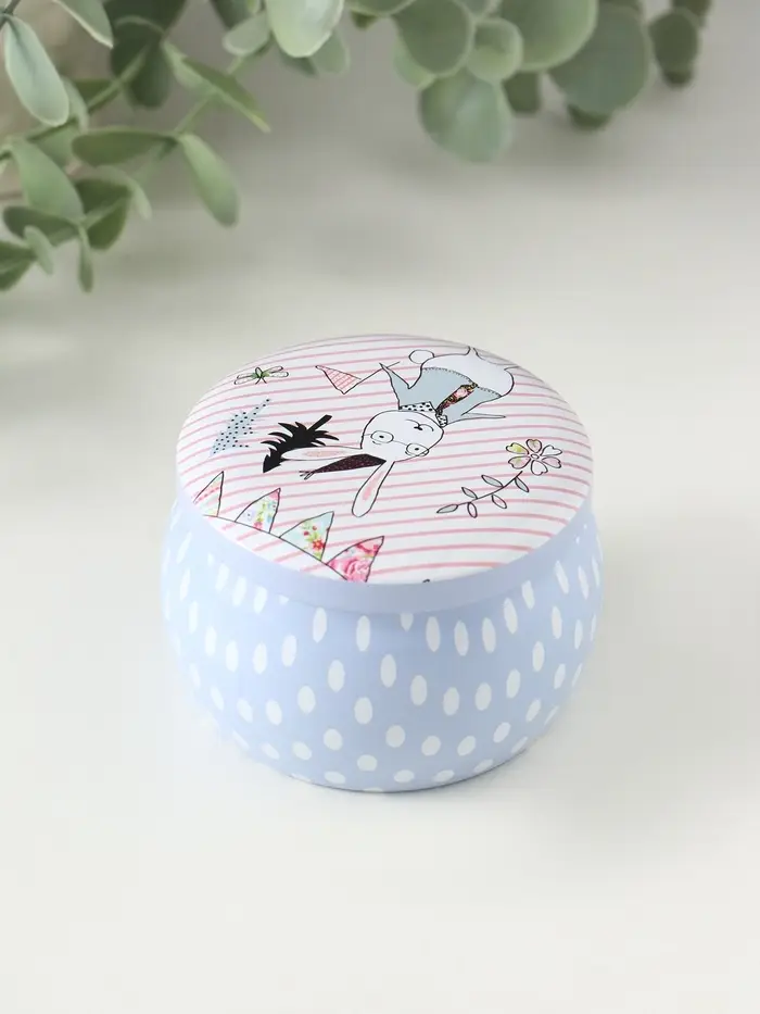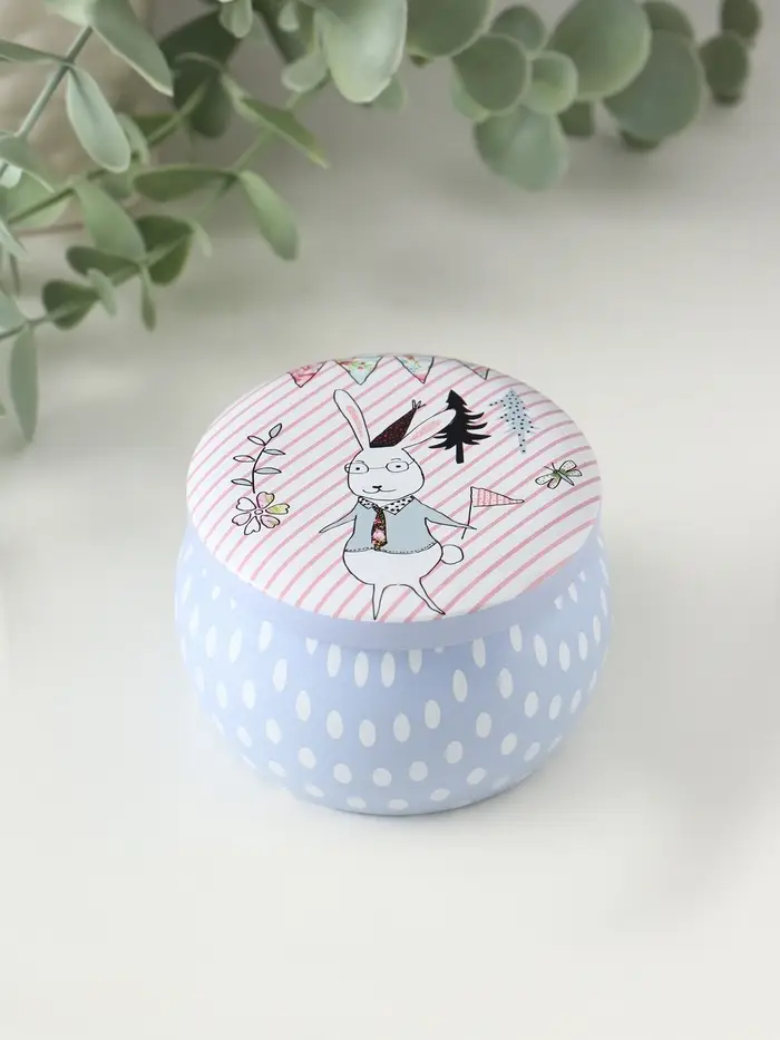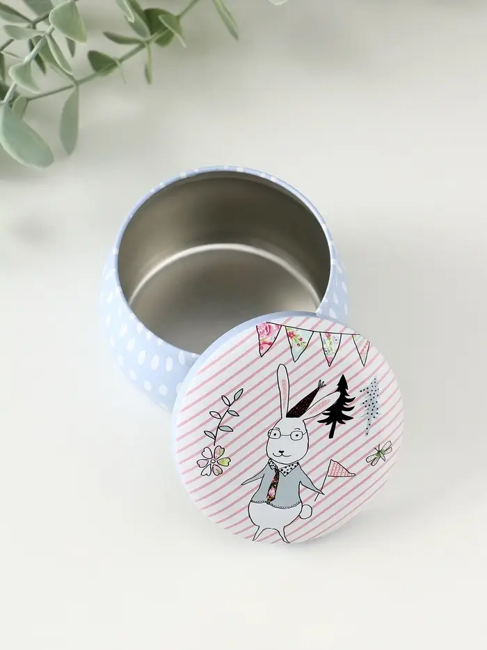 Шкатулка металл круглая "Нарисованные кролики" 7х7х5 см