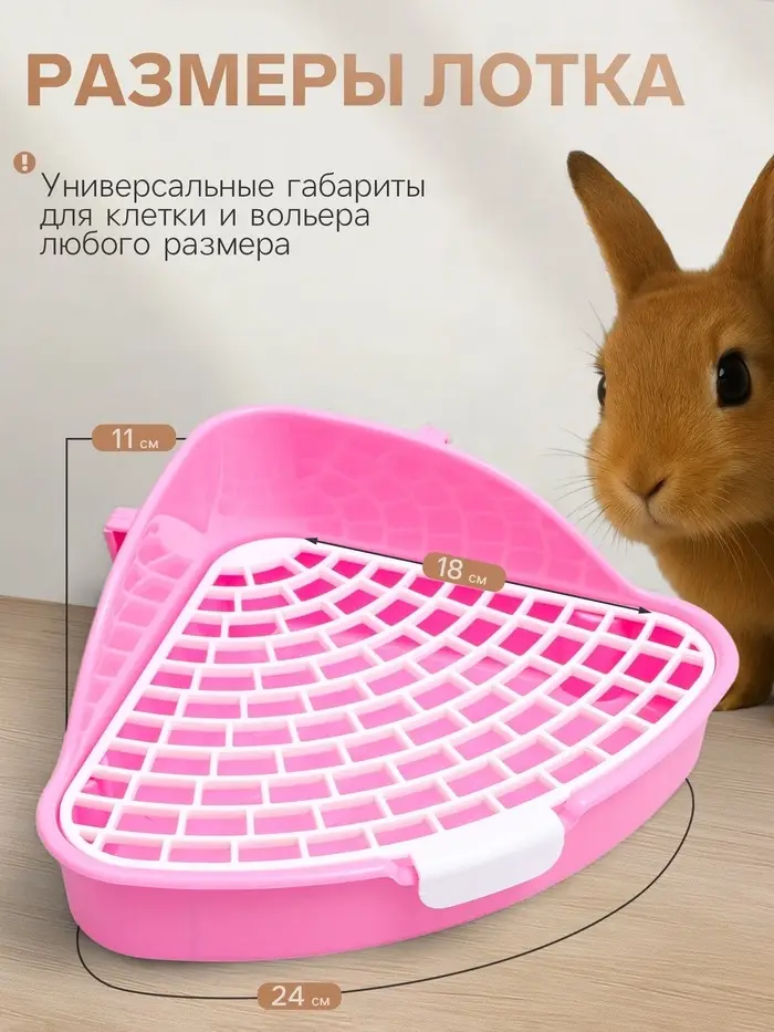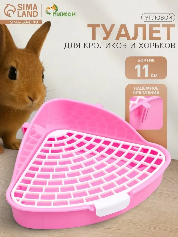 Туалет угловой для кроликов и хорьков "Пижон", 24 х 18 х 11 см, розовый