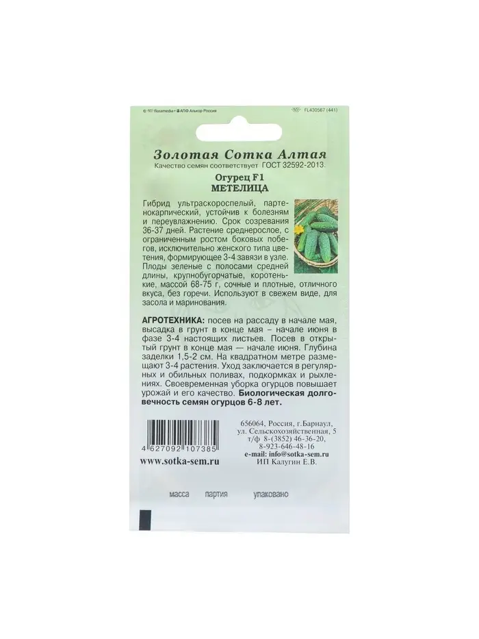 Семена Огурец "Метелица F1" партенокарпический, 0,15 г