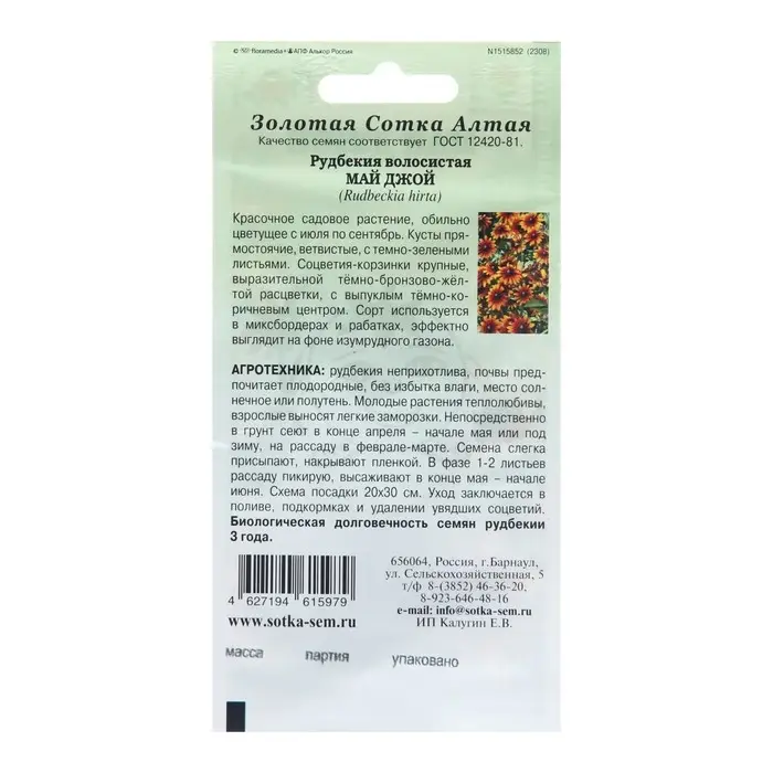 Семена цветов Рудбекия Бабье лето, смесь сортов Золотая серия, Ц/П,0,1 г