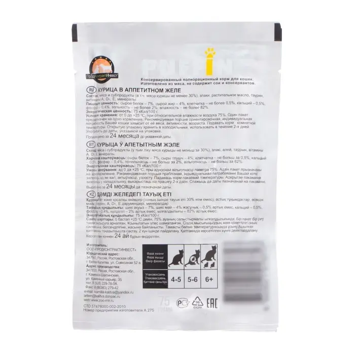 Влажный корм "Puffins" для кошек, курица в желе, 75 г