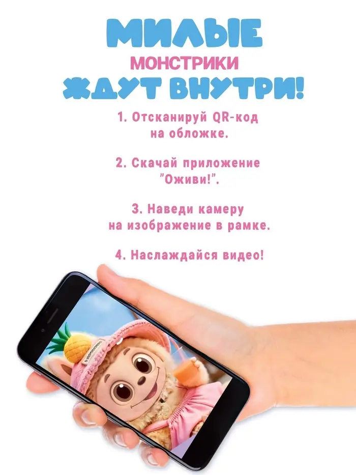 - Дополненная реальность оживляет рисунки через специальное приложение, доступное по QR-коду на обложке.