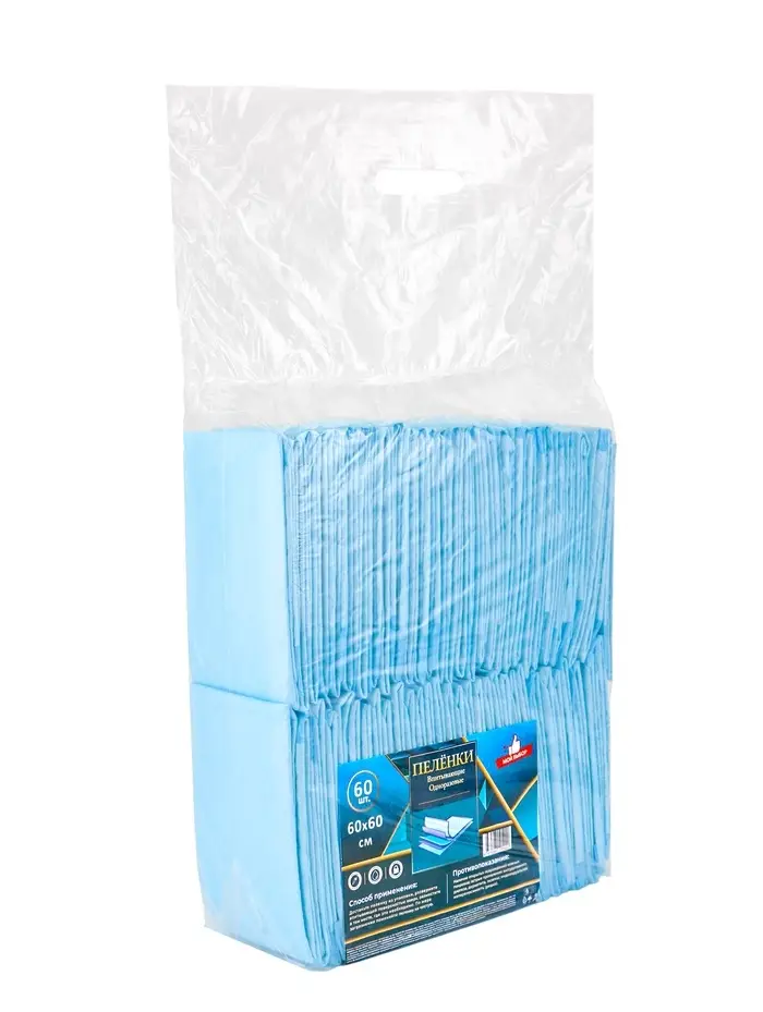 Пеленка медицинская впитывающая одноразовая, размер 60х60 (упаковка 60 штук)