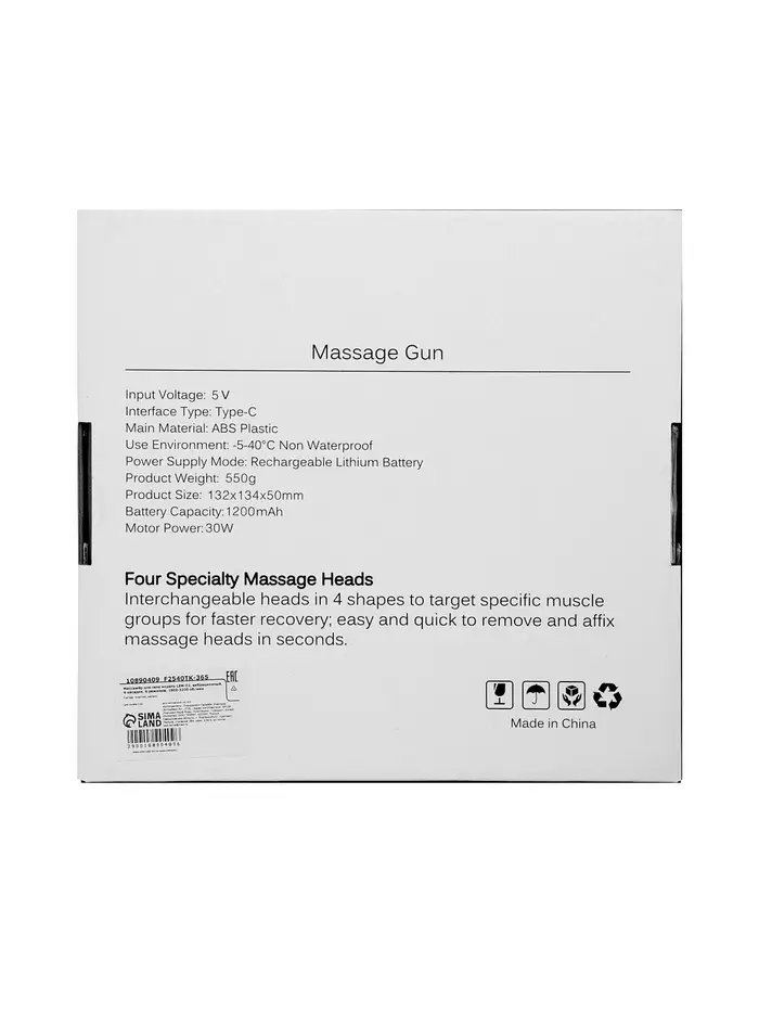 Массажёр для тела LEM-02, вибрационный, 4 насадки, 6 режимов, 1800-3200 об/мин