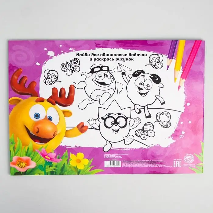 Альбом для рисования А4, 24 листа 100 г/м², на скрепке, «Смешарики»