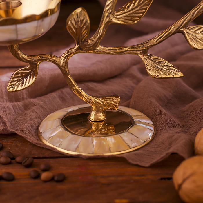Подсвечник латунь на 3 свечи "Три бутона" с перламутром 25,5х10х18,5 см