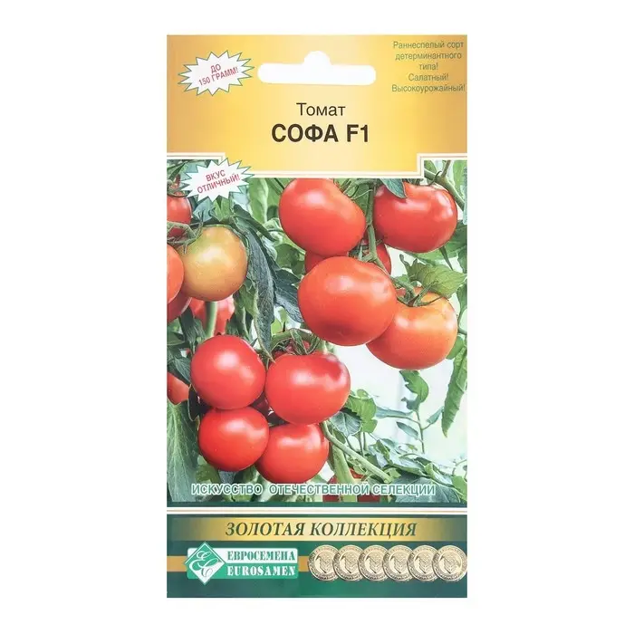 Раннеспелый детерминантный гибрид томата. С момента всходов до созревания первых плодов проходит 90-95 дней. Кисти простые, в каждой по 6-8 однородных плодов. Первое соцветие закладывается над 6 листом, последующие — через 1-2 листа. Томат отличается быстрой отдачей урожая и отличной завязываемостью. Плоды превосходных визуальных и вкусовых качеств — округлой формы, насыщенно-красного цвета, без зеленого пятна у плодоножки, массой 130-150 г. Томаты характеризуются отличной лежкостью, транспортабельностью, кислота в плодах практически отсутствует. Гибрид отлично подойдет для производства ранней продукции в открытом грунте и под временными укрытиями. Благодаря слабой облиственности, растения слабо подвержены заболеваниям. Гибрид устойчив к вирусу мозаики томата (ToMV), альтернариозу (Asc), фузариозу (Fol); толерантен к фитофторозу (Pi). Рекомендуемая плотность посадки — 4-5 растений/м² при формировании в 3 стебля. Урожайность в открытом грунте — до 20,0 кг/м², в защищенном — до 25,0 кг/м².