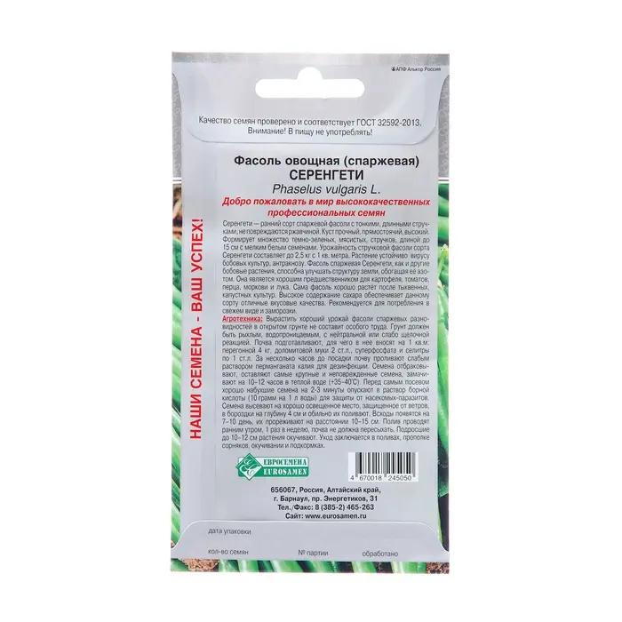 Семена Фасоль овощная "Серенгети", 5 г