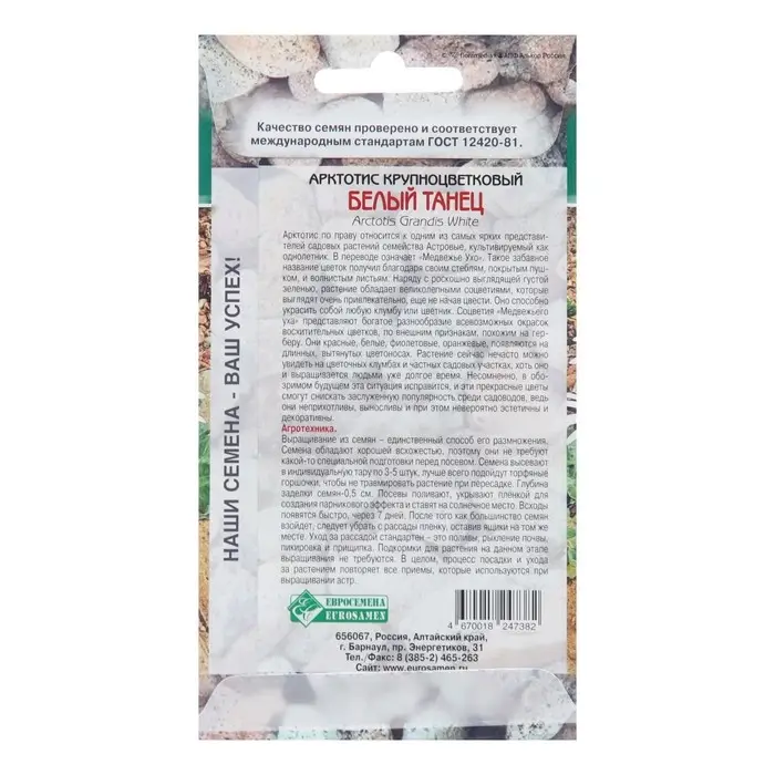 Создайте уникальный ландшафт с белыми цветами! Семена крупноцветкового арктотиса – идеальный выбор для альпийских горок и цветников. Эти многолетние растения с белыми цветами добавят элегантности и свежести в ваш сад.