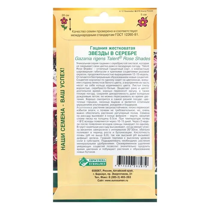Семена цветов Гацания жестковатая "Звезды в серебре", 5 шт
