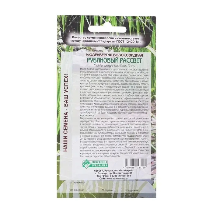 Семена Мюленбергия волосовидная «Рубиновый Рассвет», многолетник, декоративные злаки, 5 шт.