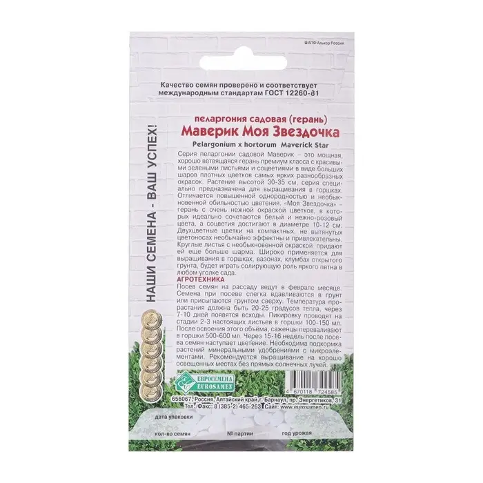 Семена Пеларгония садовая Маверик "Моя Звездочка", 3 шт