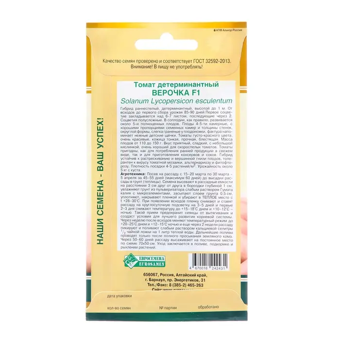 Семена Томат "ВЕРОЧКА", F1, 10 шт