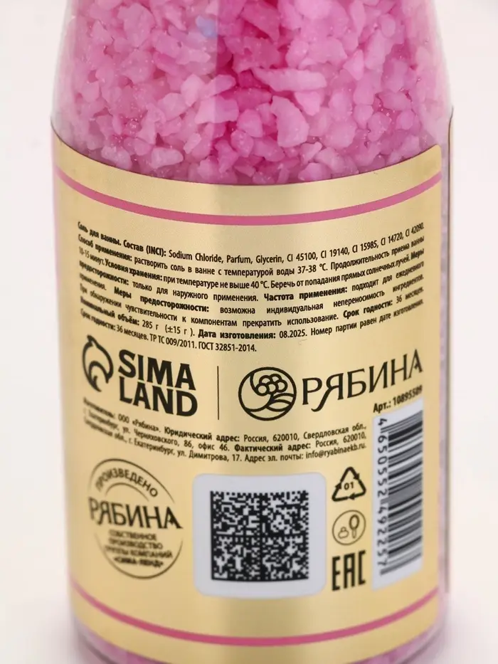 Соль для ванны Champagne Queen, 285 г, аромат фрукты со льдом, Чистое счастье
