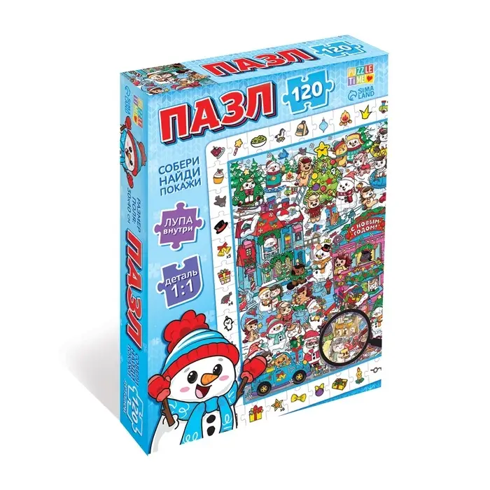 Пазл "Найди и покажи. Новогодний переполох" 120 деталей