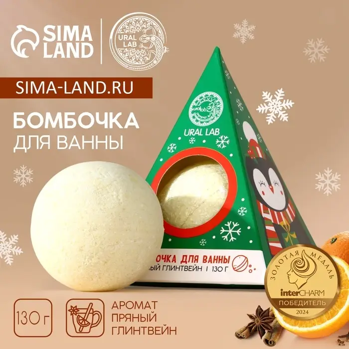 Бомбочка для ванны URAL LAB, 130 г, аромат пряного глинвейна, Новый Год