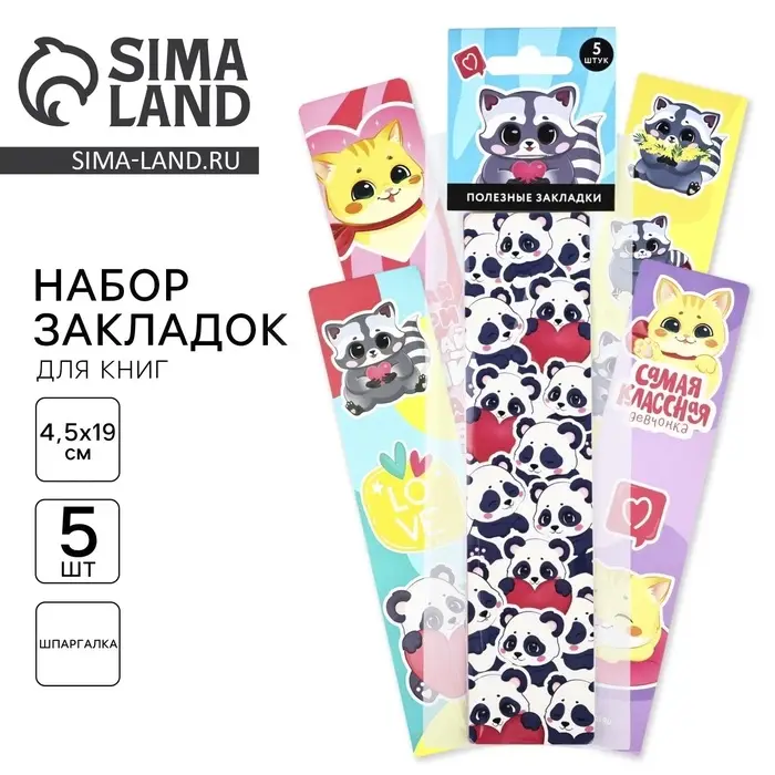 Картонные закладки 5 штук в наборе «Енотик»