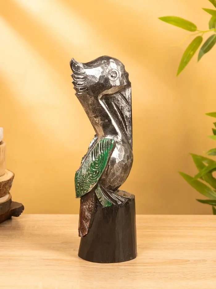 Сувенир интерьерный "Пеликан" 10х10х33 см, дерево, цв. серебро