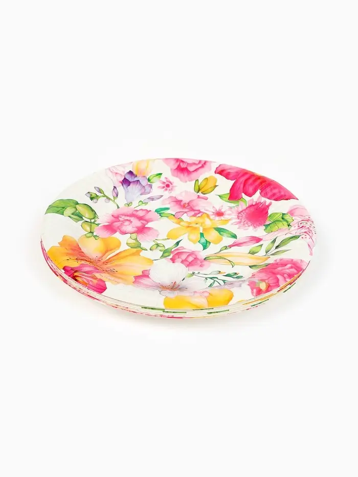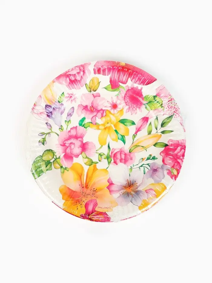 Тарелка одноразовая бумажная «Акварельные цветы», белая, 18 см