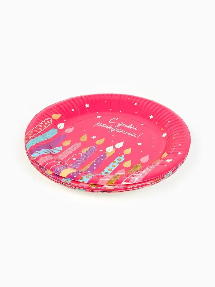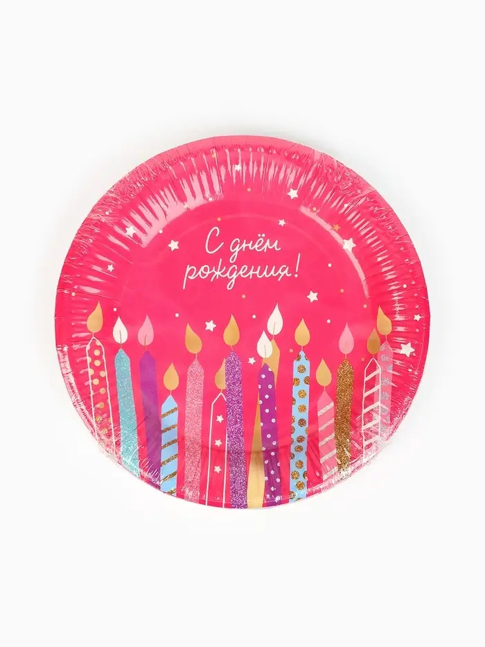 Тарелка одноразовая бумажная «С Днём рождения, свечи», розовая, 18 см