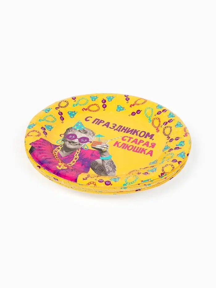 Тарелка одноразовая бумажная «Старая клюшка», жёлтая, 18 см