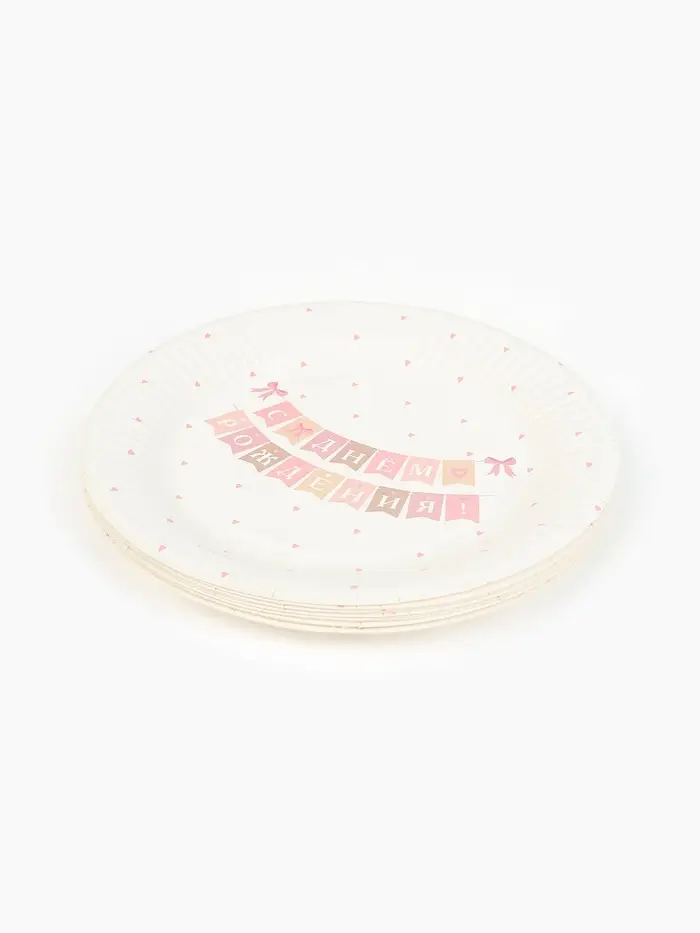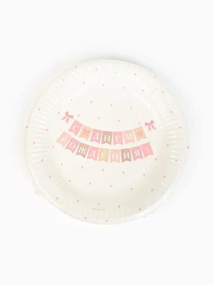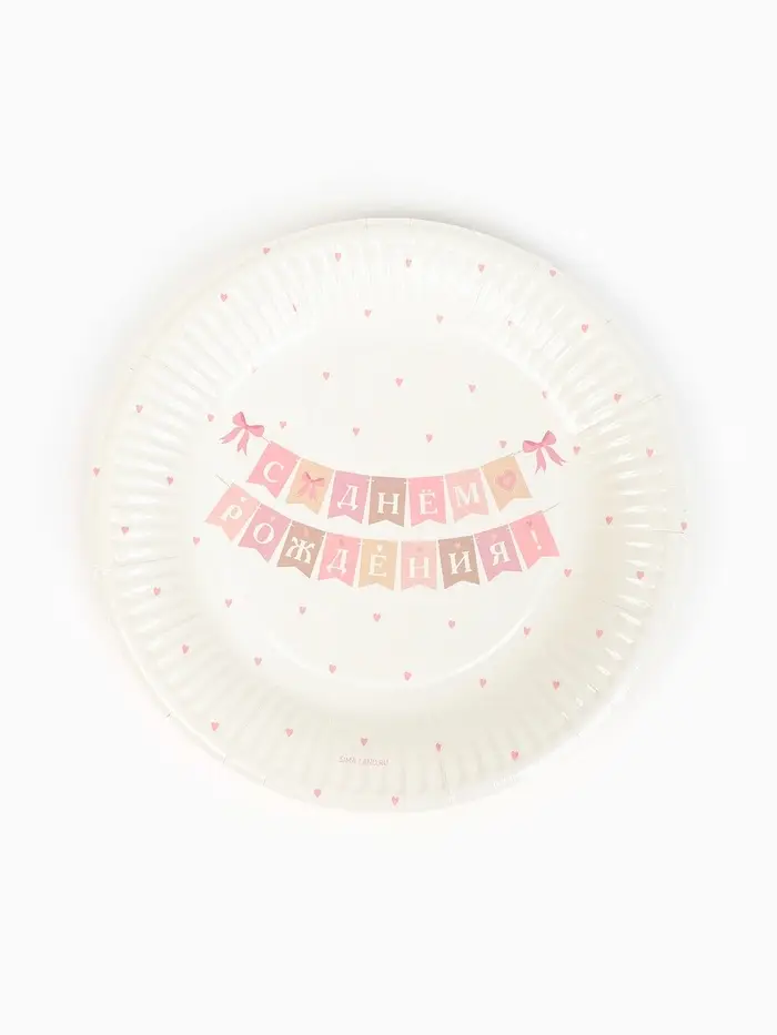 Тарелка одноразовая бумажная «С Днём рождения» гирлянда, белая, 18 см