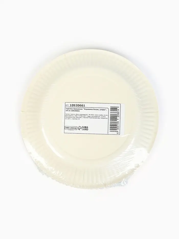 Тарелка одноразовая бумажная «Керамика белая, узоры», 18 см