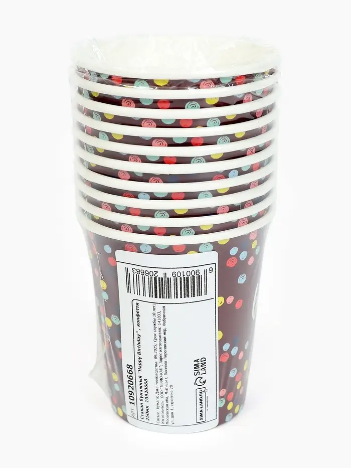 Стакан одноразовый бумажный «Happy Birthday» , конфетти 250 мл
