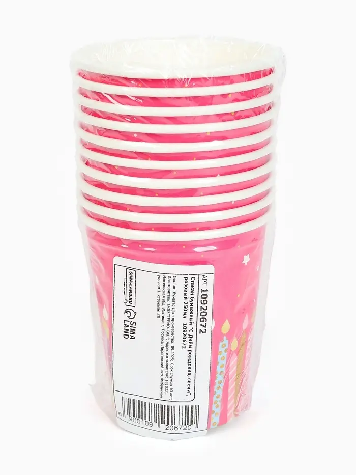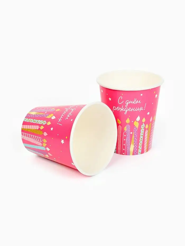 Стакан одноразовый бумажный «С Днём рождения», розовый, 250 мл