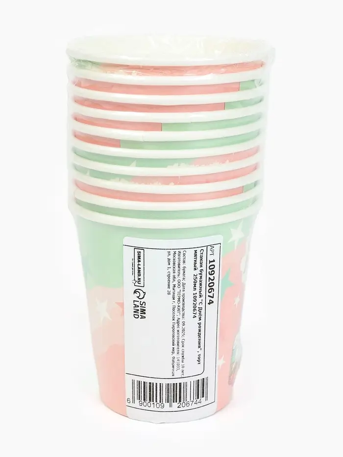 Стакан одноразовый бумажный «С Днём рождения», 250 мл