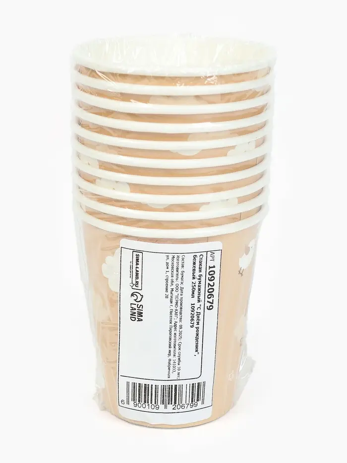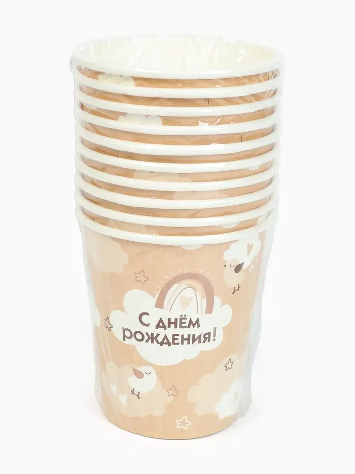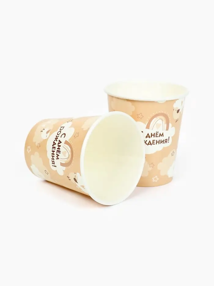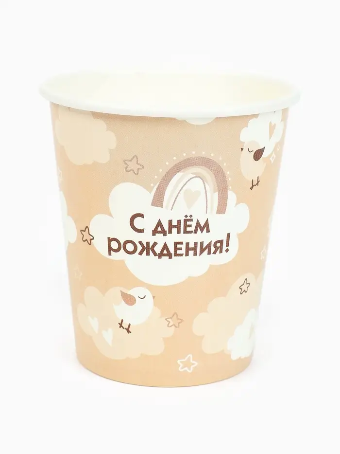 Стакан одноразовый бумажный «С Днём рождения», бежевый, 250 мл
