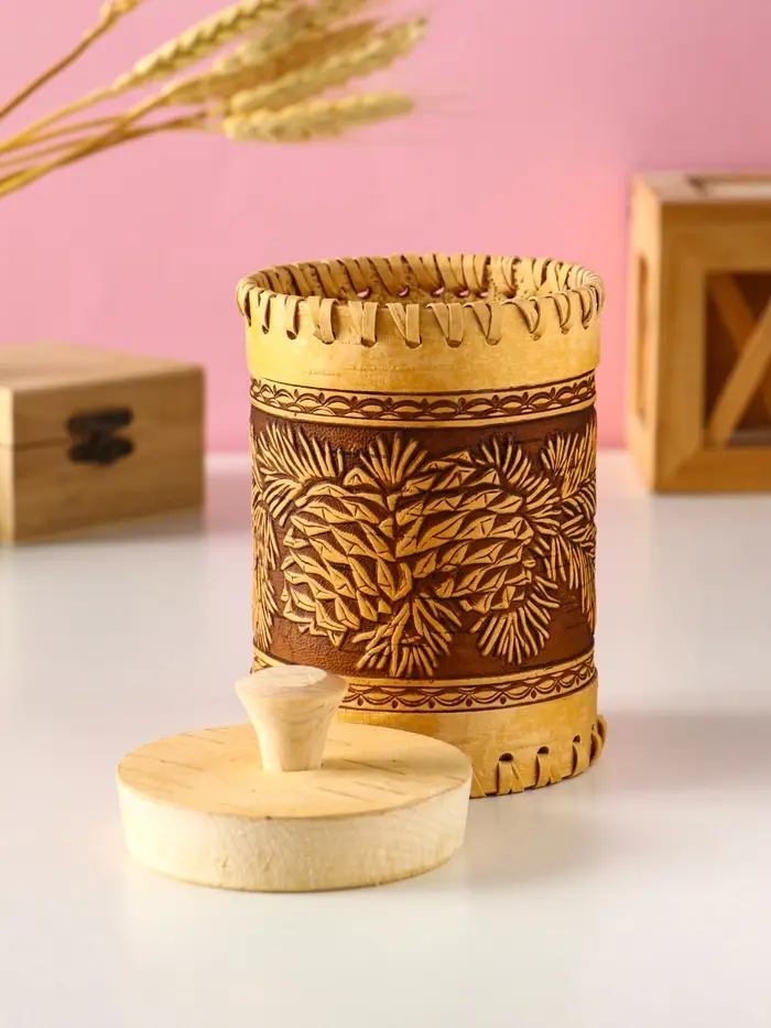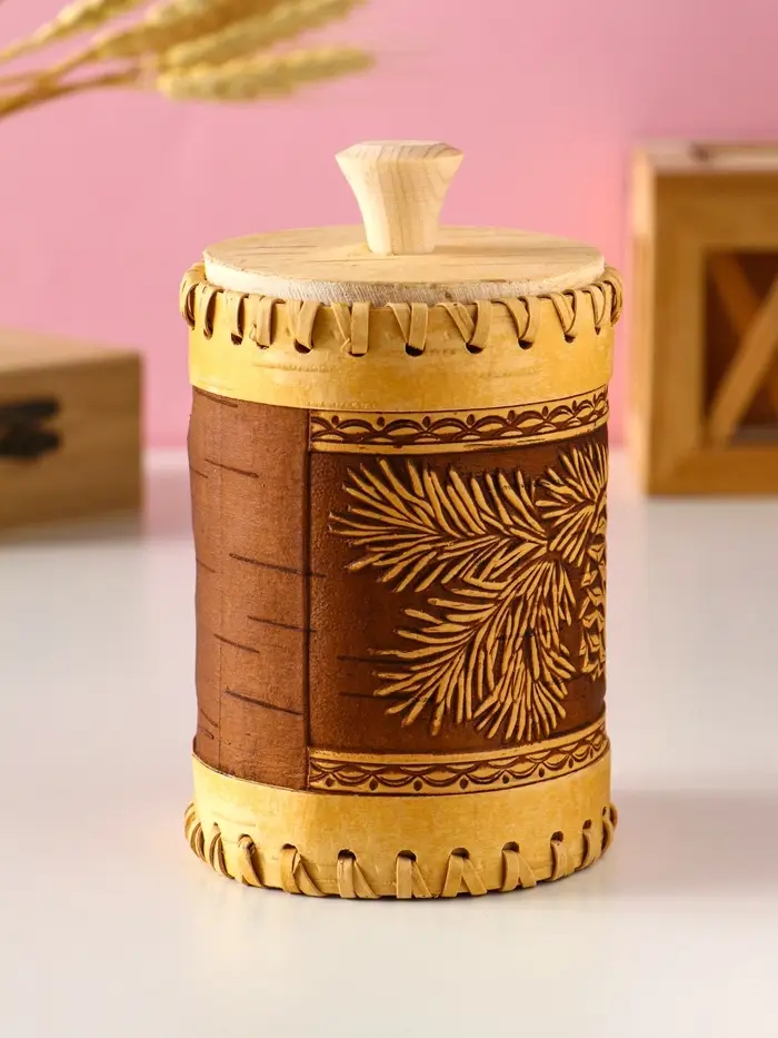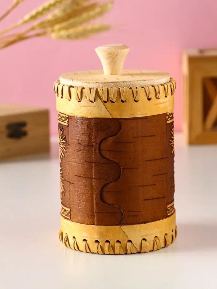 Туес шитый "Шишки" , D8смхH(с хватком)14см, береста