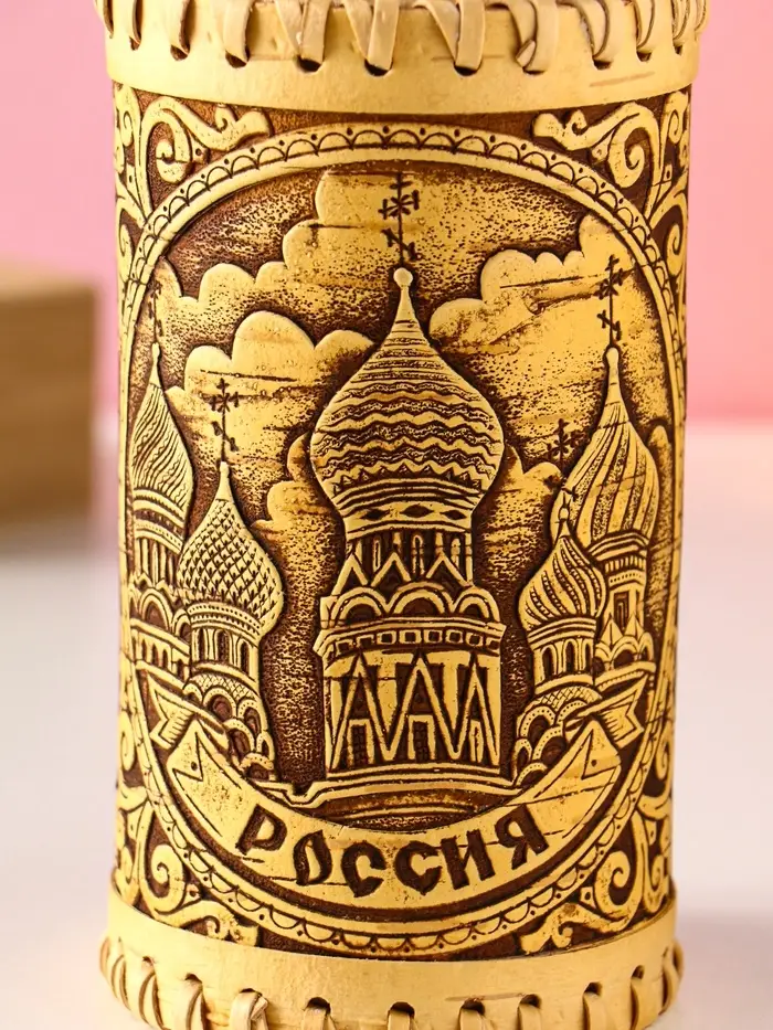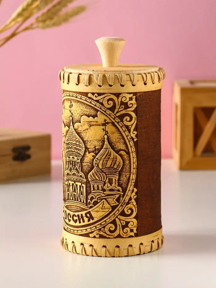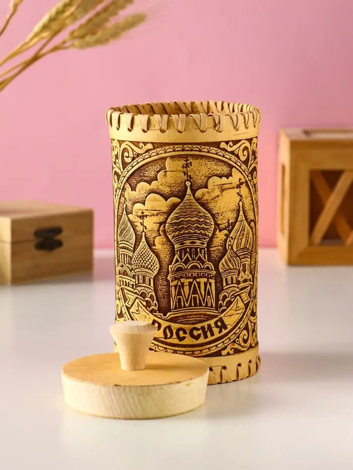 Туес "Россия", D8,5смхH(с хватком)17см, береста