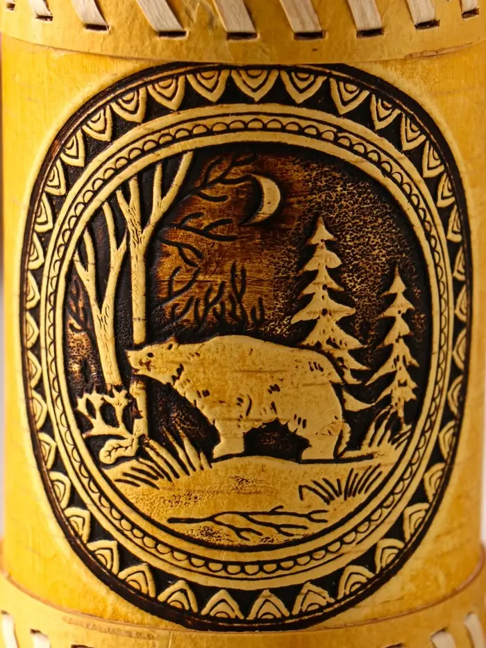 Туес "Лесной" (Медведь), D8,5 смхH(с хватком)14,5 см, береста