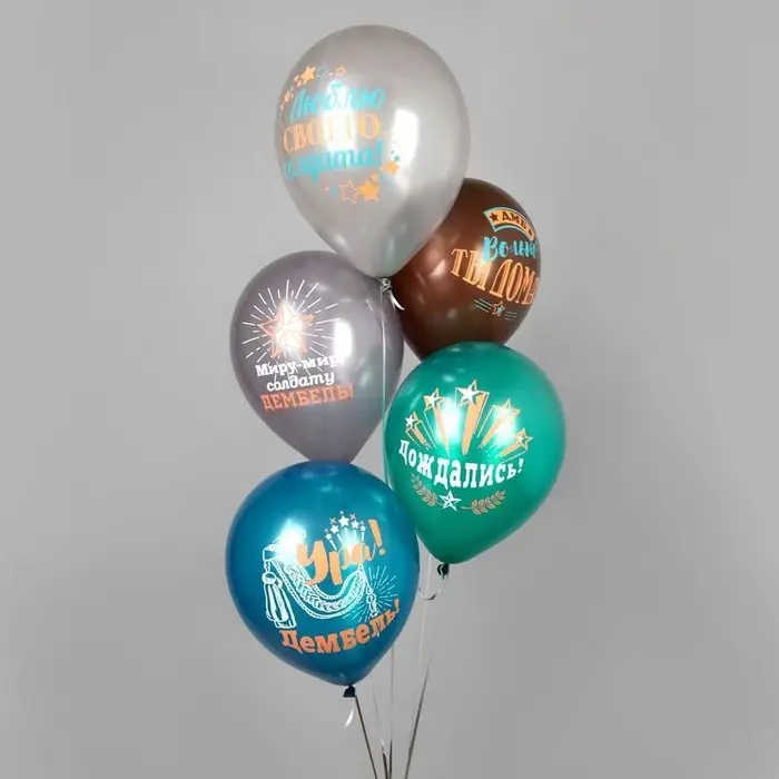 Воздушные шары латексные 12" "Дембель" пастель МИКС 1ст., 2цв., набор 5 шт.