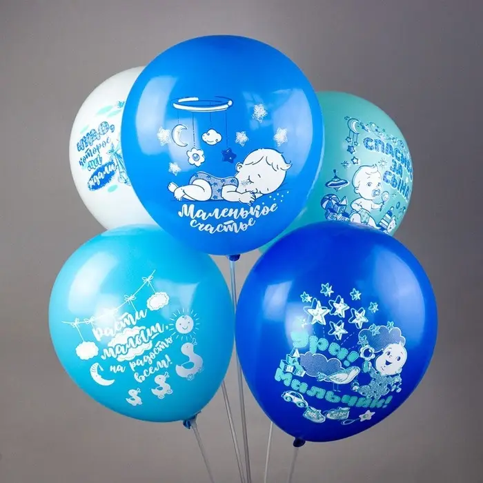 Воздушные шары латексные 12" "Новорожденные. Мальчик" шелк МИКС, 2ст. 2цв., 5 диз., набор 5 шт. 1091