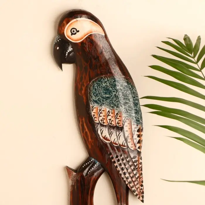 Настенное панно "Попугай на ветке" 50х18х2 см