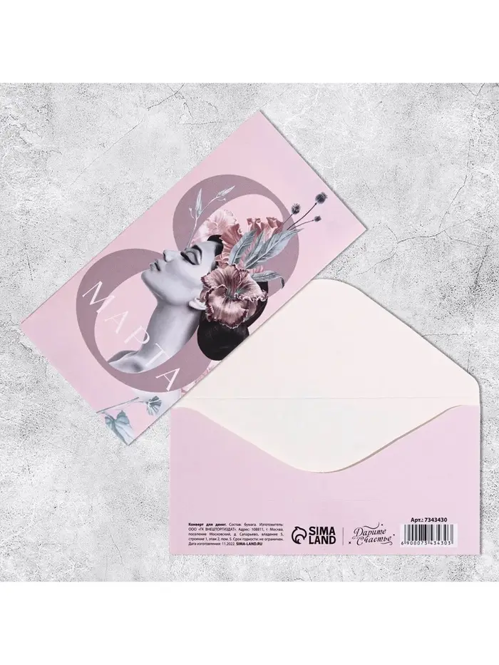 Конверт для денег «8 Марта», 16.5 х 8 см