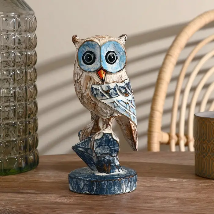 Сувенир дерево "Сова на ветке" синяя 23 см