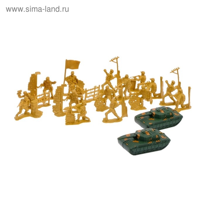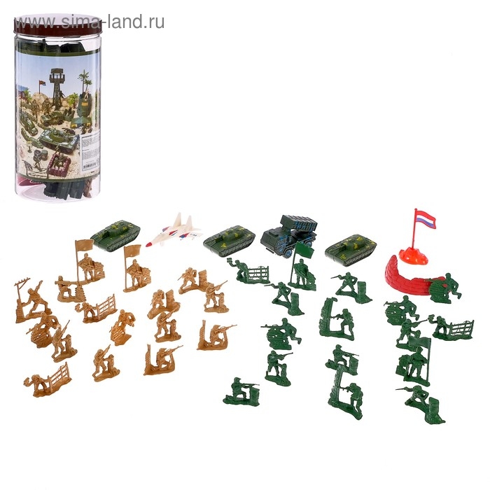Набор солдатиков «Войско» — игрушечные солдаты с боевой техникой и аксессуарами! Атмосфера настоящего боевого задания — флаг, ограждения, мешки с песком — всё воплощено с учётом мельчайших деталей.