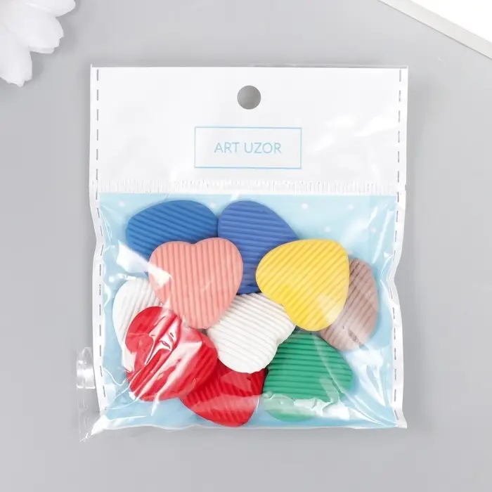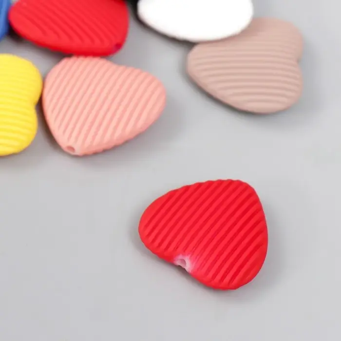 Набор бусин для рукоделия и плетения «Арт Узор. Ребристые сердца», 10 шт., акрил, 0.6×2.4×2.2 см, МИКС