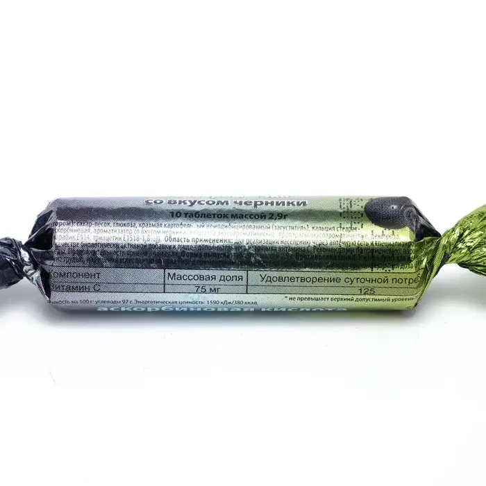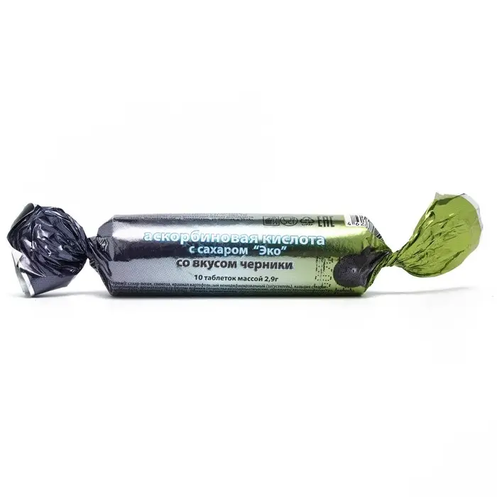 Аскорбиновая кислота со вкусом черники Экотекс, 10 таблеток по 2,9 г