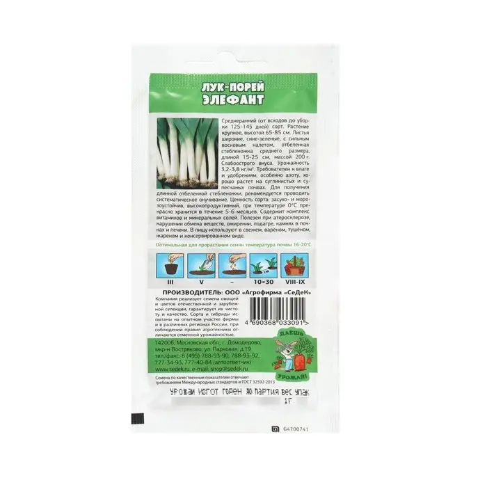 Семена Лук Порей "Элефант мс "1 г