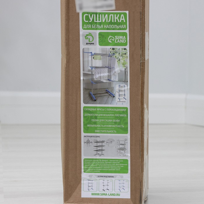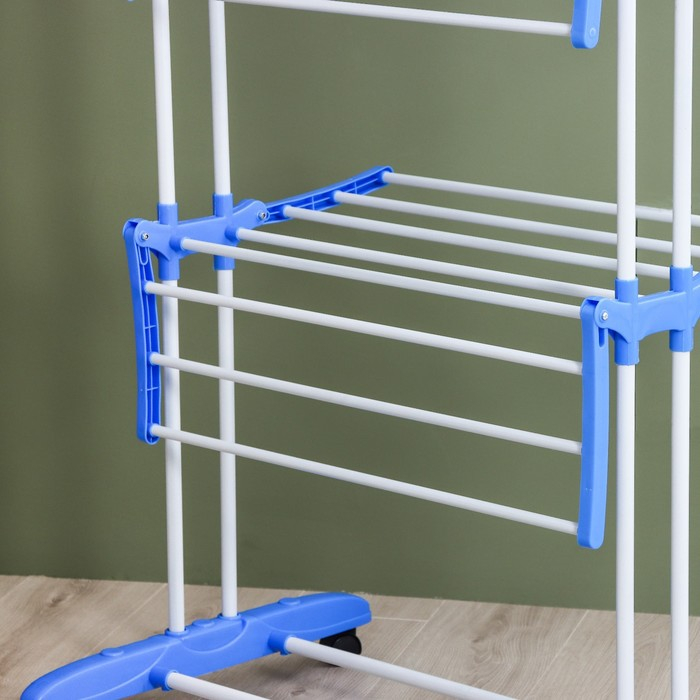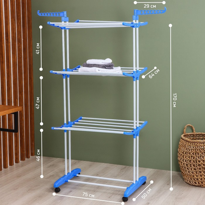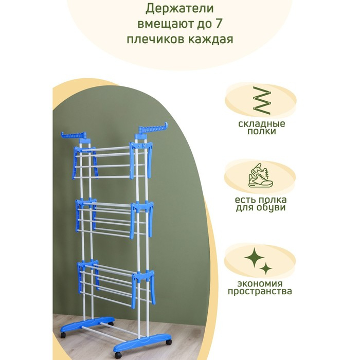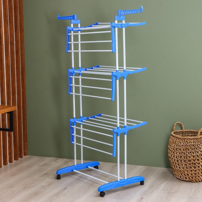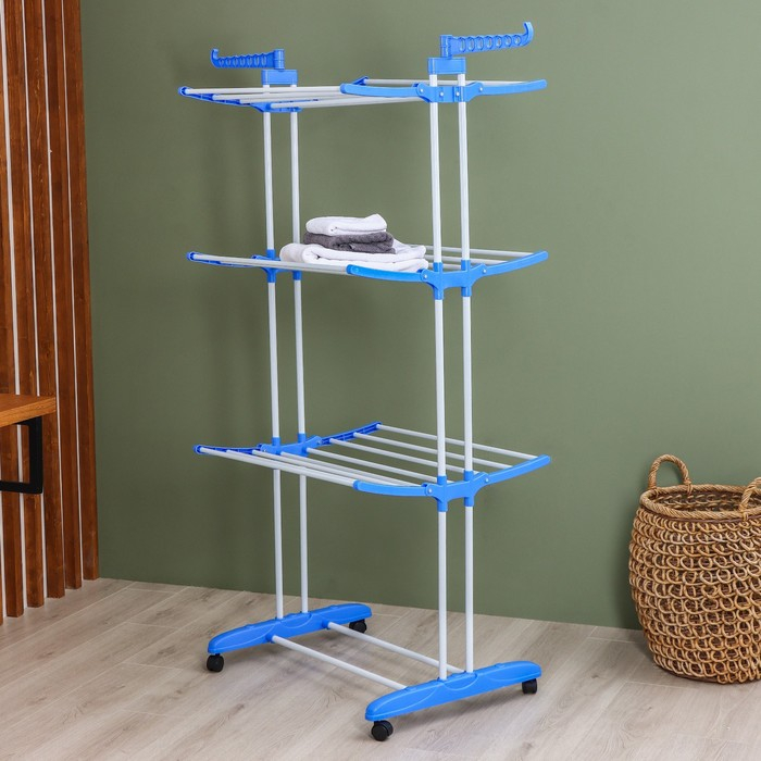 Сушилка для белья напольная трёхуровневая Доляна, 75(126)×64×170 см, рабочая длина 16 м, на колёсах