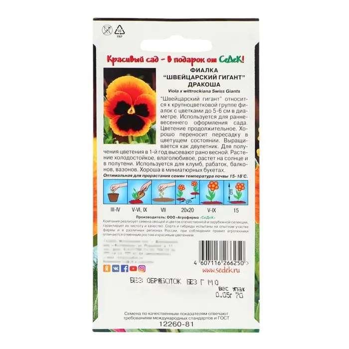 Семена цветов Фиалка "Дракоша", 0,05 г