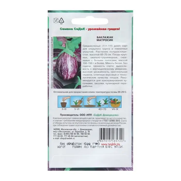 Семена Баклажан "Алёшка", F1, скороспелый, 0,05 г