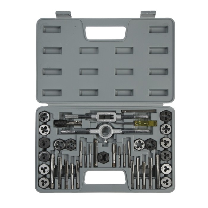 Набор инструментов предназначен для создания внутренней и внешней резьбы. Для удобства хранения и транспортировки предусмотрен кейс.