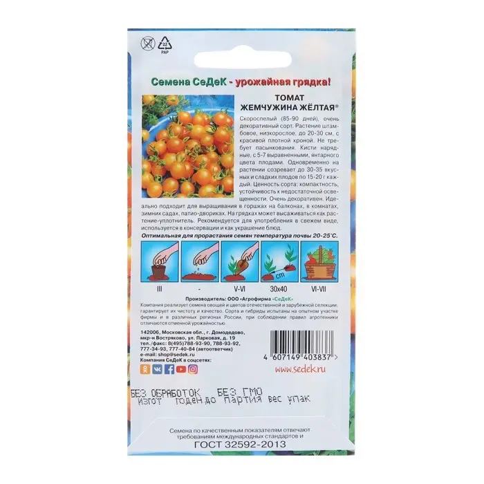 Семена Томат "Жемчужина Желтая F1", 0,1 г