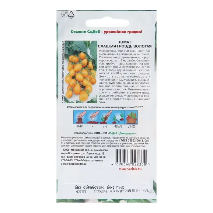 Семена Томат "Сладкая гроздь золотая", 0,1 г