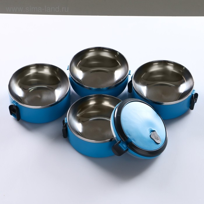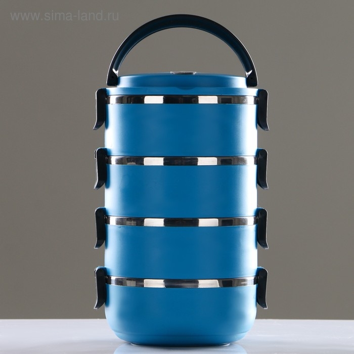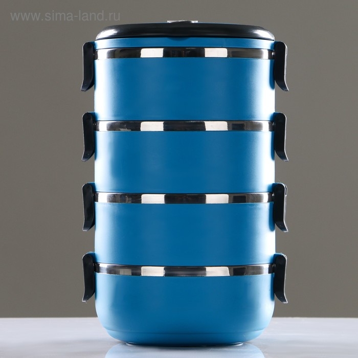 Ланч бокс с отделениями, контейнер для еды "Доляна", 2 л, 4 уровня, сохраняет тепло 3 ч, 14 х 26 см